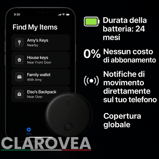 Clarovea™ – Localizzatore GPS Intelligente per Auto – Funziona con Android e iOS Find My